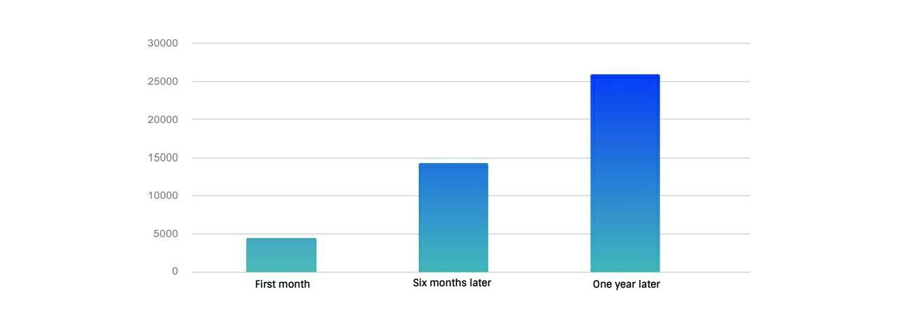 ● from 4,500 to 25,000 people per month - this is how much the total customer base grew during the year.